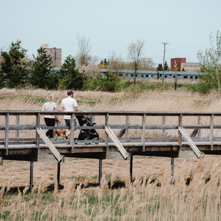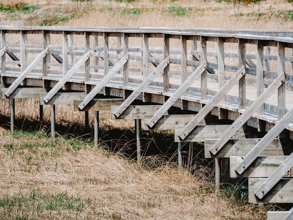 De plus, s’il est nécessaire de retirer les passerelles dans le futur, les pieux peuvent être enlevés rapidement et facilement. Puisqu’ils sont galvanisés, ils peuvent, avec le bois des passerelles, être réutilisés pour fabriquer de nouvelles passerelles, ce qui permet de réduire les coûts et l’impact environnemental en éliminant les déchets.